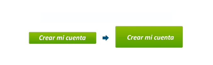 Es imprescindible que parezca un botón. Existe una frase muy utilizada en usabilidad web que reza así «La familiaridad genera usabilidad». Si los usuarios se familiarizan con cualquier elemento podrán usarlo de forma intuitiva. La gente ha estado haciendo «clic» en botones durante años en Internet. Intuitivamente saben qué deben hacer para alcanzar el siguiente paso, por lo que ten sumo cuidado en rizar el rizo del diseño hasta tal punto que tus botones de acción no parezcan botones. Particularmente he utilizado siempre el término «mullidito» lo cuál ha llevado a risas y burlas (amistosas) por parte del equipo, pero es que un botón debe apetecer ser pulsado, por ello debe tener su relieve, debe ser rechonchete… mullidito es la palabra, mal que le pese a algunos ;)