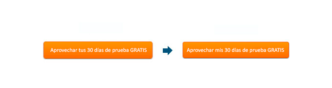 Otro punto vital dentro del copy es el sentido de «propiedad». Varios estudios en psicología han demostrado que los seres humanos se sienten mucho más motivados por evitar la pérdida de lo que lo son por la consecución de la ganancia. Por ello es mucho más efectivo utilizar la primera persona del singular en el mensaje interno del botón ya que infiere propiedad o titularidad e incentiva la motivación de evitar la pérdida.