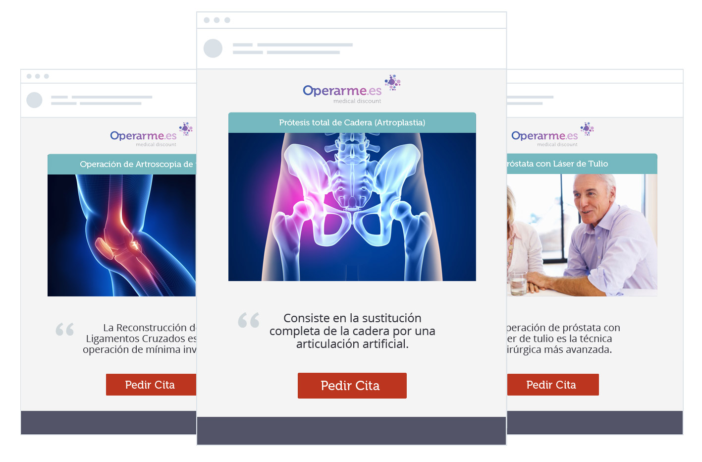 Por último en cuanto al diseño del botón corresponde sería el espacio en blanco alrededor del mismo. Se trata del área que rodea el botón call to action. Si conseguimos abrirnos espacio para que el botón «respire» con suficiente amplitud conseguiremos centrar la atención del usuario sobre él en el momento adecuado. Sabemos que esto no siempre es fácil ya que somos muy dados a intentar «rellenar» cualquier espacio libre, pero hay que tratar de conseguirlo si buscas mejorar tu conversión. Sin embargo tampoco hay que pecar en exceso de los espacios en blanco, ya que demasiado blanco puede dar lugar a confusión al usuario y pensar que todos los elementos no están conectados entre sí (texto, imágenes, botón). A continuación os dejamos un ejemplo de una de las plantillas de e-mail marketing que diseñamos para nuestro cliente Operarme.es