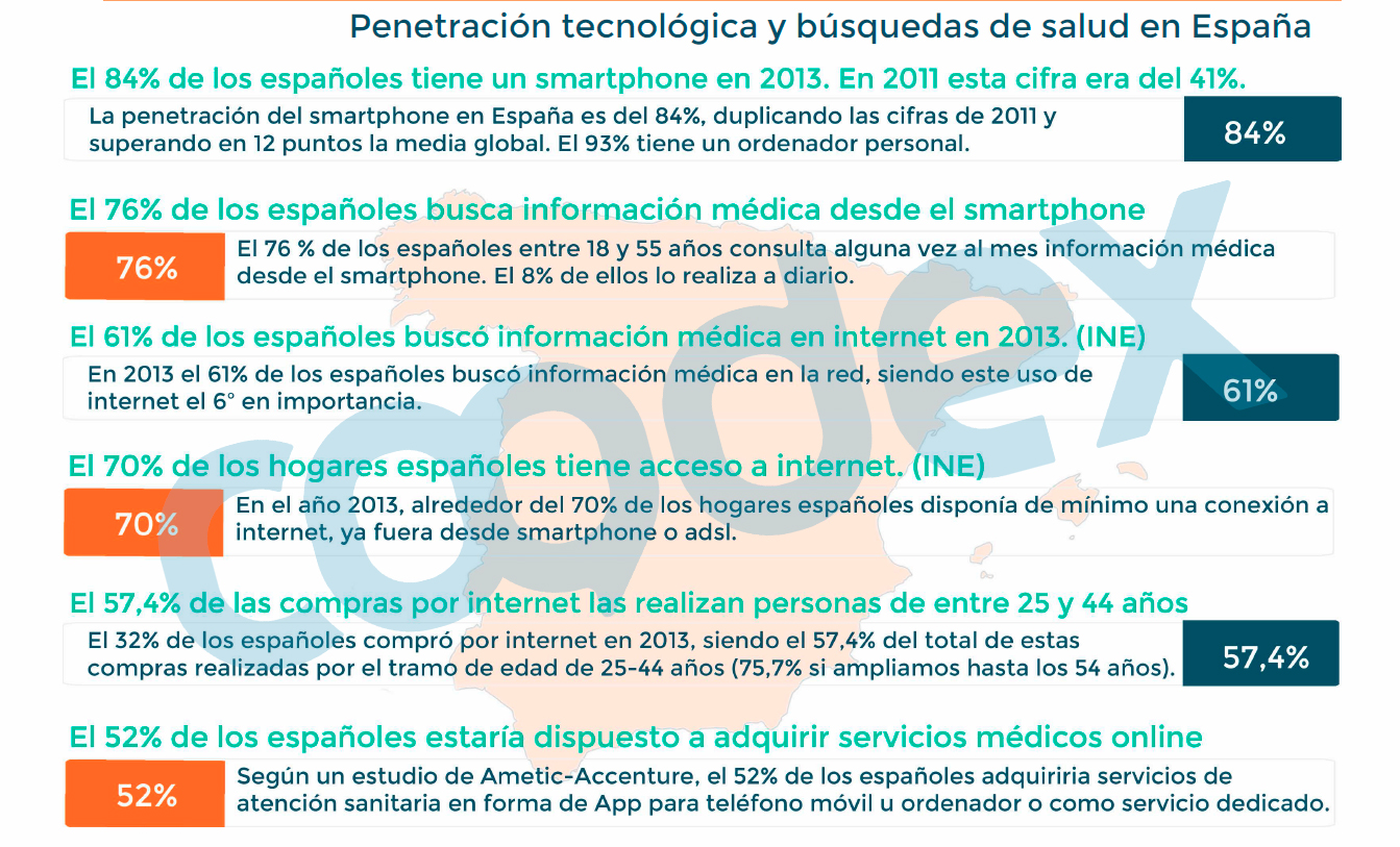 Los medios sociales son un reto para las empresas de salud ya que tradicionalmente han sido reticentes a introducir los medios sociales dentro de sus estrategias comunicativas . Sin embargo, los consumidores buscan cada vez más por las recomendaciones de amigos, familiares y todo ello a través de una gran cantidad de sitios de medios sociales. (El ochenta y ocho por ciento de los usuarios estadounidenses de Internet buscan información de salud y los consejos médicos en línea) Los datos en España son que el 61% de los internautas españoles buscó información médica en la red en 2013, llegando al 67% en el caso del público femenino y siendo el 6º uso más importante de Internet. Las redes sociales son claramente una gran oportunidad de interactuar directamente con los consumidores. (Este año, la FDA finalmente lanzó dos proyectos de documentos de orientación para las compañías médicas sobre el uso de los medios de comunicación social. Las directrices se han diseñado específicamente para las empresas reguladas por la FDA, como los fabricantes de dispositivos médicos y las compañías farmacéuticas. Hacen hincapié en la importancia de equilibrar la información de beneficios con las discusiones de riesgo. Si bien la orientación de la FDA es un muy atrasados, también apenas comienza a describir cómo las empresas de salud deben usar los medios sociales). Todavía no se aborda la cuestión más amplia de cómo los proveedores y empresas de salud médica debe interactuar con los usuarios de estas plataformas con las expectativas del consumidor y las necesidades en mente. En Coodex pensamos que, si bien no hay una directriz unívoca de comunicación online a través de medios sociales con los pacientes, al menos sí se debería implementar dentro de las políticas de comunicación corporativas que cada compañía debería tener.