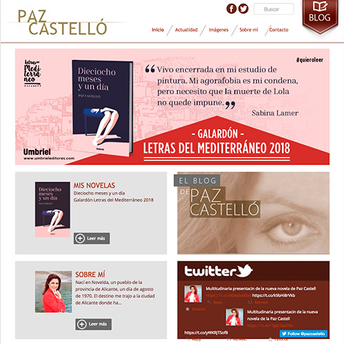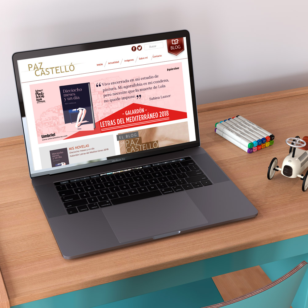 Paz Castelló tenía un blog personal desde donde publicaba y difundía sus textos. Al iniciar la difusión y publicación de su novela, Paz llamó a Coodex para desarrollar una página web más profesional que su blog gratuito. Configurado sobre el gestor de contenidos WordPress (ya que ella estaba acostumbrada a usarlo) le hicimos el diseño y programación de su página web.