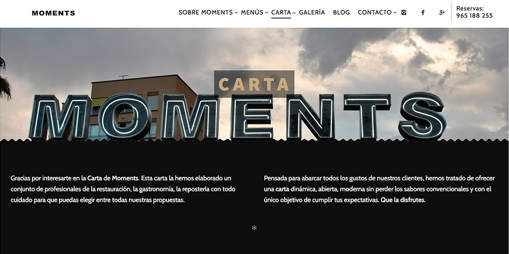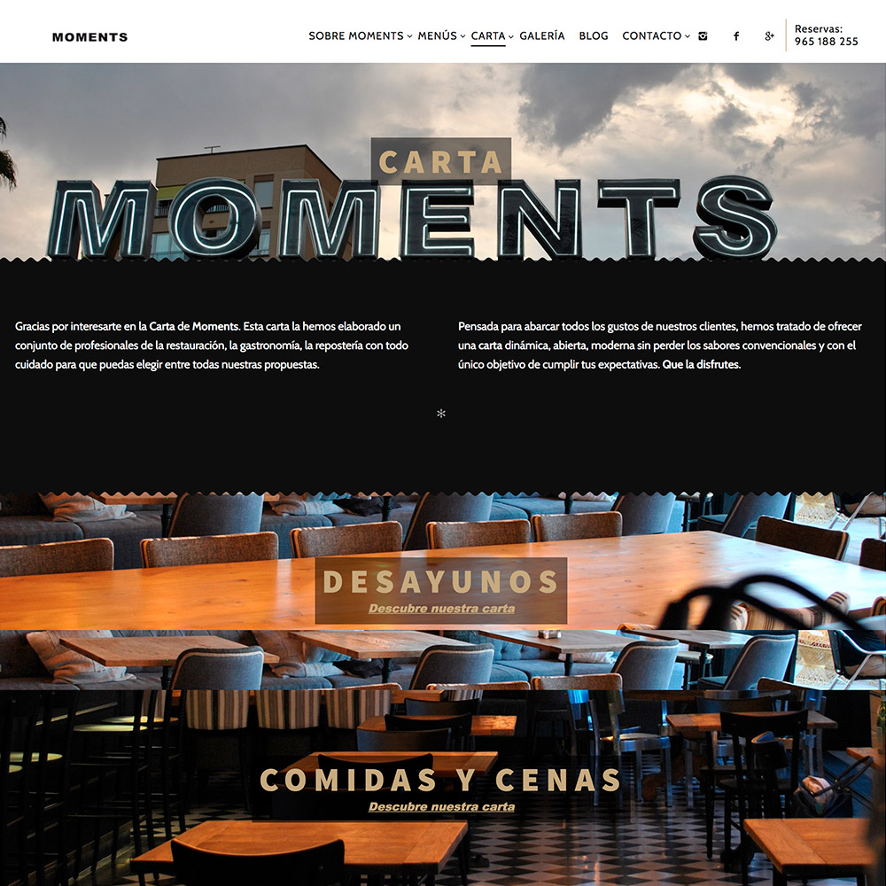 Diseño de página web para restaurantes: Moments Bar Urbanova