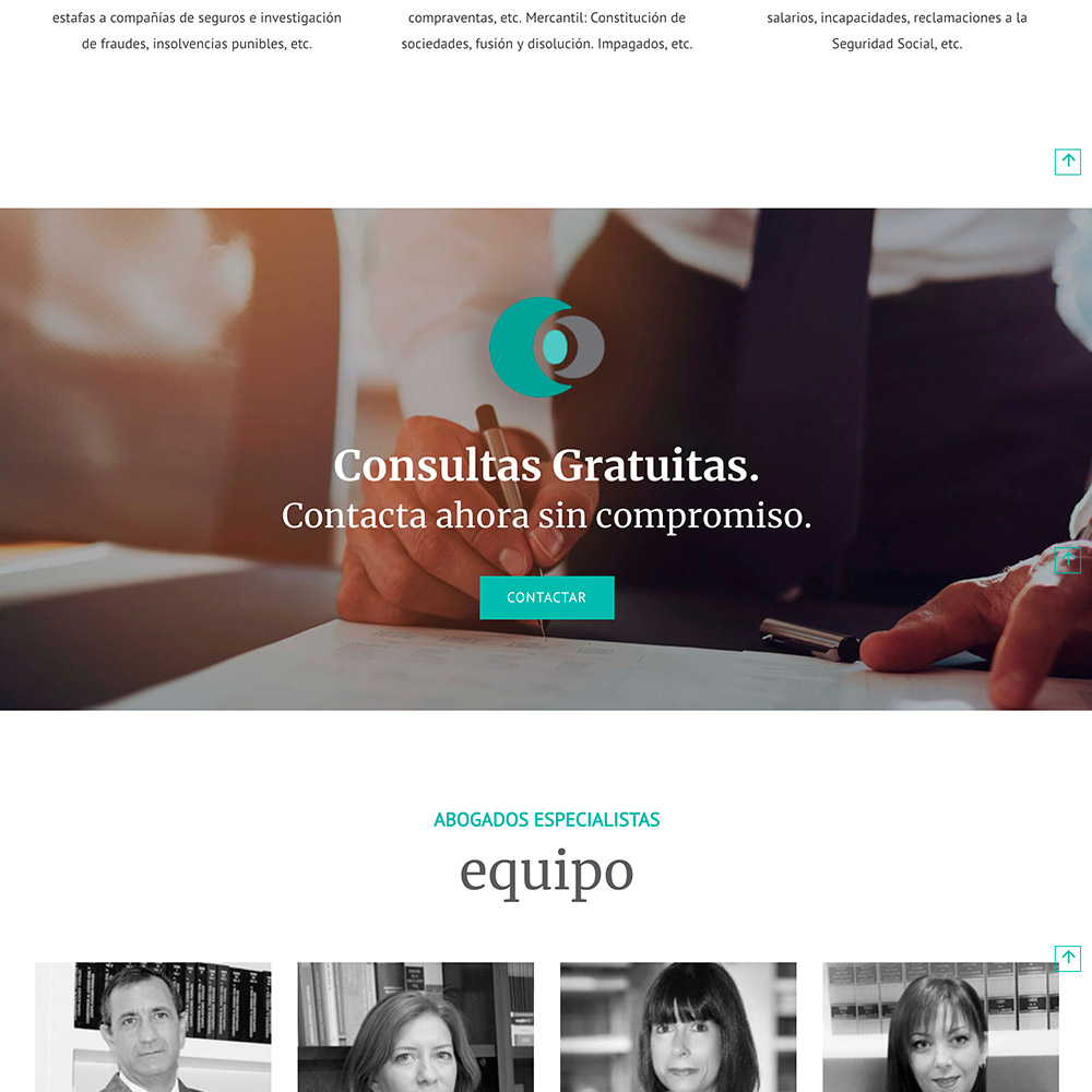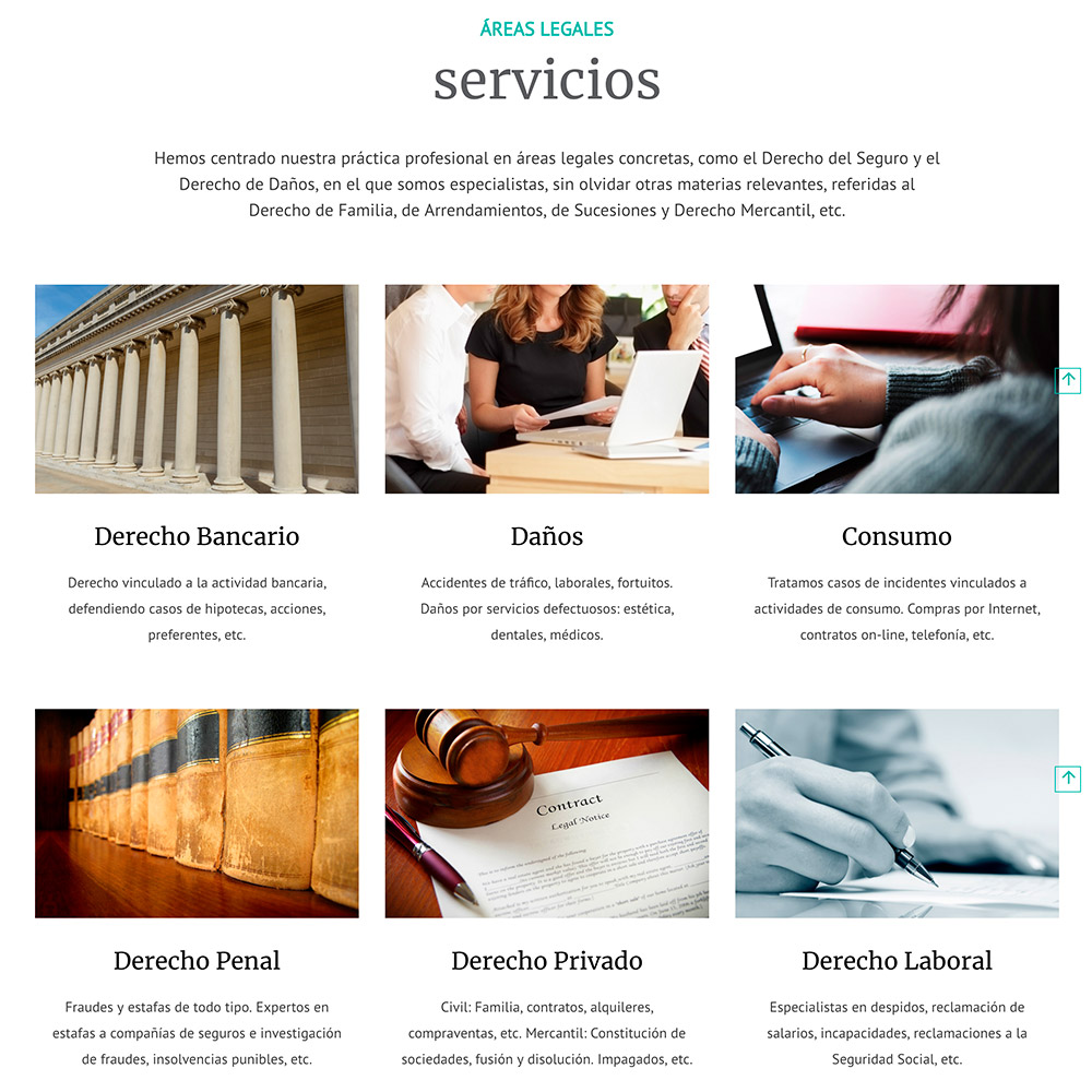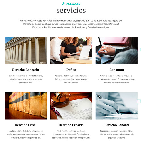 A Guevara Abogados se le realizó un pequeño restyling de marca y a partir de ese nuevo logotipo corporativo se comenzó a diseñar y poner color a todas las secciones de la web. Tipografías grandes, espacios desahogados, contenidos accesibles y formas de contacto permanentemente presentes en cualquier punto de la web. En general, un diseño actual que combinase y equilibrase el tradicional estilo de los despachos de abogados.