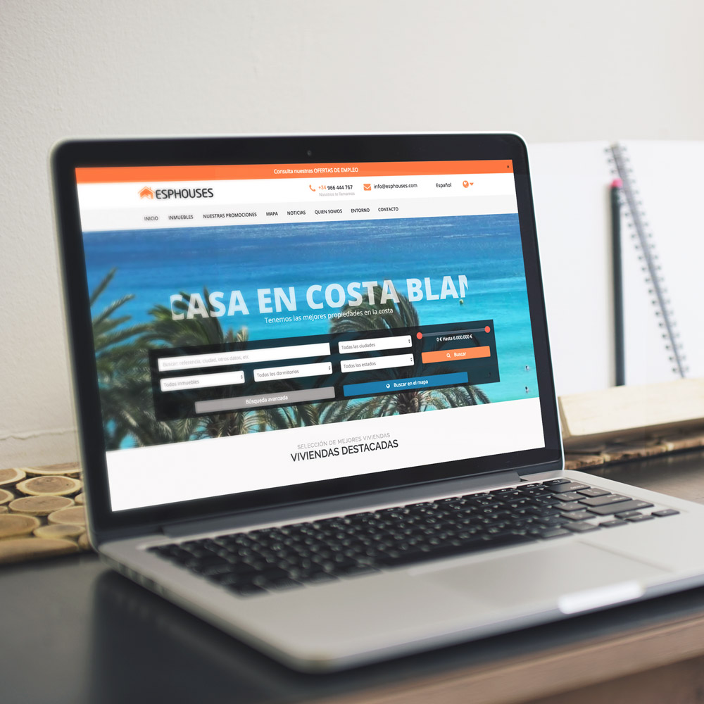 Esphouses nos encargó un proyecto de diseño web. Además, dicha página web cuenta con un CRM interno también desarrollado totalmente a medida para las necesidades del cliente.