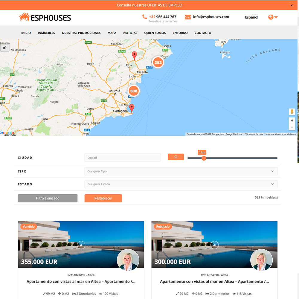 Además, en la actualidad estamos desarrollando un nuevo CRM a medida con mayores funcionalidades que garantizan a Esphouses una gestión de clientes, inmuebles, etc. mucho más eficaz.