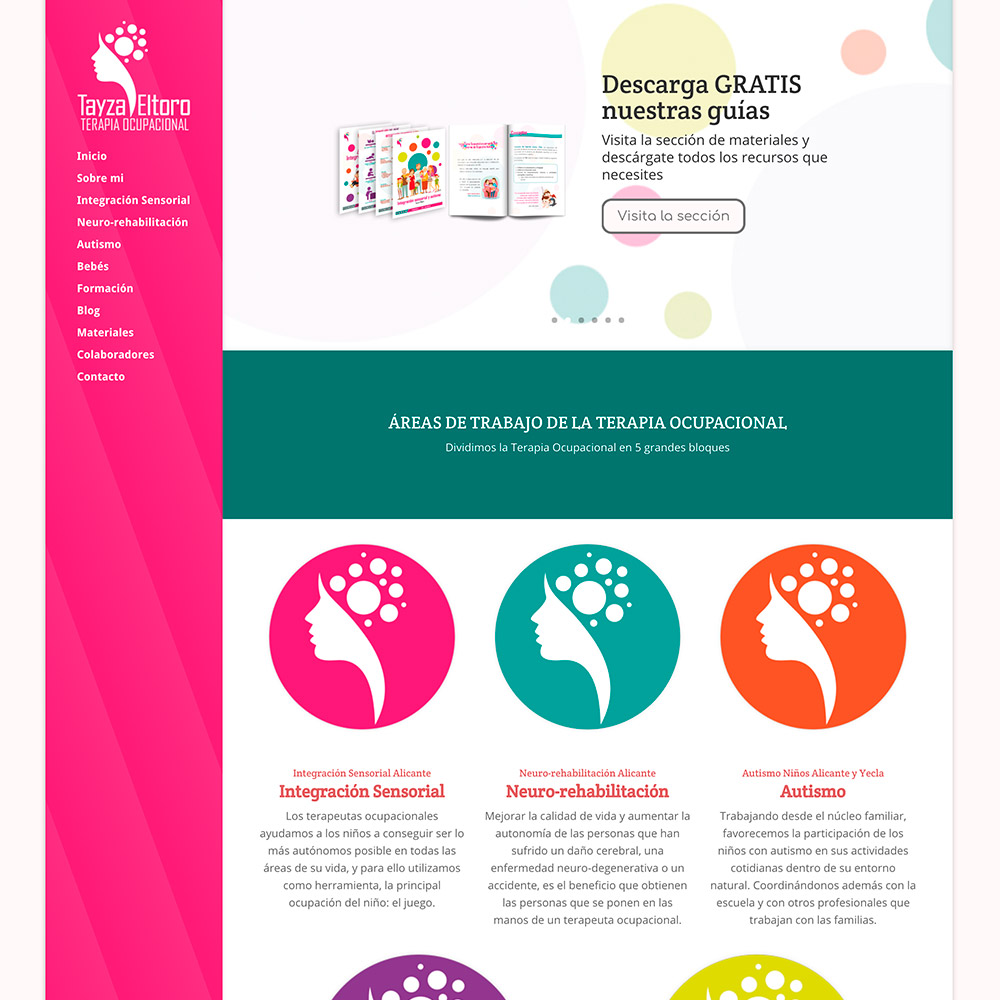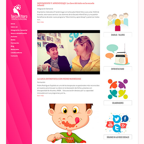 Tayza Eltoro es una terapeuta ocupacional que presta sus servicios en Alicante y Yecla. Tras especializarse en el campo de la Neurología, se dedica a ayudar a familias, en la cuales algunos de sus componentes tienen algún impedimento para participar en las actividades de la vida cotidiana de manera satisfactoria. Estimulación temprana en bebés, niñ@s con autismo, integración sensorial en niños, cursos y talleres son algunos de los servicios para dotar de mayor visibilidad en Internet.