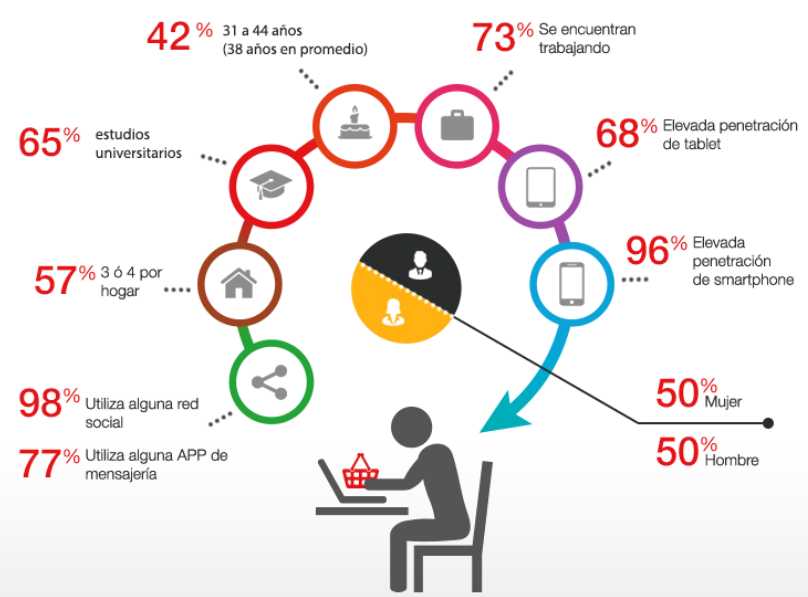 España cada vez cuenta con una mayor cantidad de internautas y personas conectadas a la red. En la actualidad, existen más de 21 millones de internautas de entre 16 y 60 años, de los que 15,9 millones son compradores online. Como bien indica el gráfico que tienes a continuación, sus perfiles suelen ser muy variados: